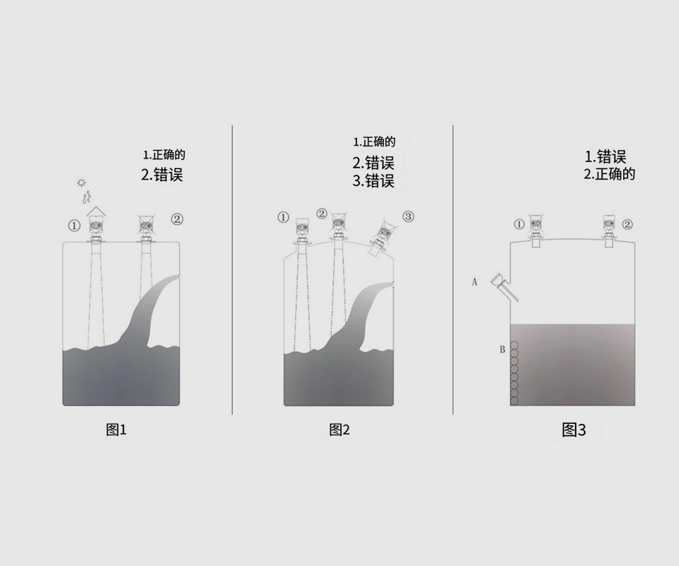 超聲波物位計在發(fā)射超聲波脈沖時,不能同時檢測反射回波。由于發(fā)射的超聲波脈沖具有一定的時間寬度,同時發(fā)射完超聲波后傳感器還有余振,期間不能檢測反射回波,因此從探頭表面向下開始的一小段距離無法正常檢測,這段距離稱為盲區(qū)。被測的高物位如進入盲區(qū),儀表將不能正確檢測,會出現(xiàn)誤差。如有需要,可以將物位計加高安裝。